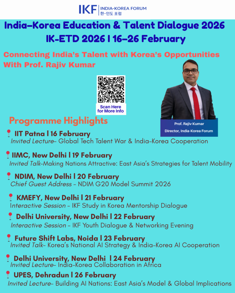 The India–Korea Forum (IKF) is pleased to organize the India–Korea Education & Talent Dialogue 2026 (IK-ETD 2026) in India from 16–26 February 2026. This national […]